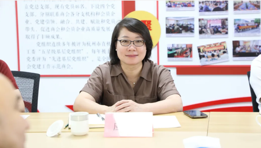 7月3日,杭州市委社会工作部副部长、市委两新工委副书记应彩虹一行到杭州市诸暨商会开展走访调研,深入了解商会党建工作和商会建设发展情况。市委社会工作部行业协会商会发展处处长姜剑涛,机关党委专职副书记兼人事处处长任丹萍,机关党委工作人员章秀萍参加。商会常务副会长兼医专委主任陈文斌、西湖会长郦麓滨、钱塘会长何望君、法专委主任陈纪钢等会长班子成员参加座谈交流。