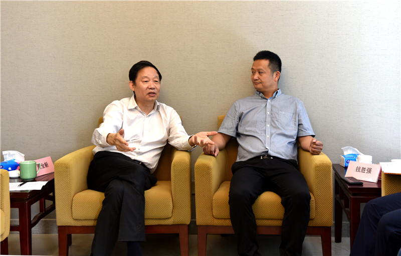 周会长从商会机构设置、制度建设、搭建平台、服务会员、投资和公益回归等方面与钱会长开展深入交流。周会长谈到,通过这几年商会建设发展的实践,说明我当初根据新时期商会的实际,提出 “搭桥、维权、建平台、做公益”的思路是方向是对的,几年来,我们不断完善内部治理结构,创新服务管理模式,全面培育商会文化,致力建设绿色、生态、新型、规范化商会,取得了一些成绩。